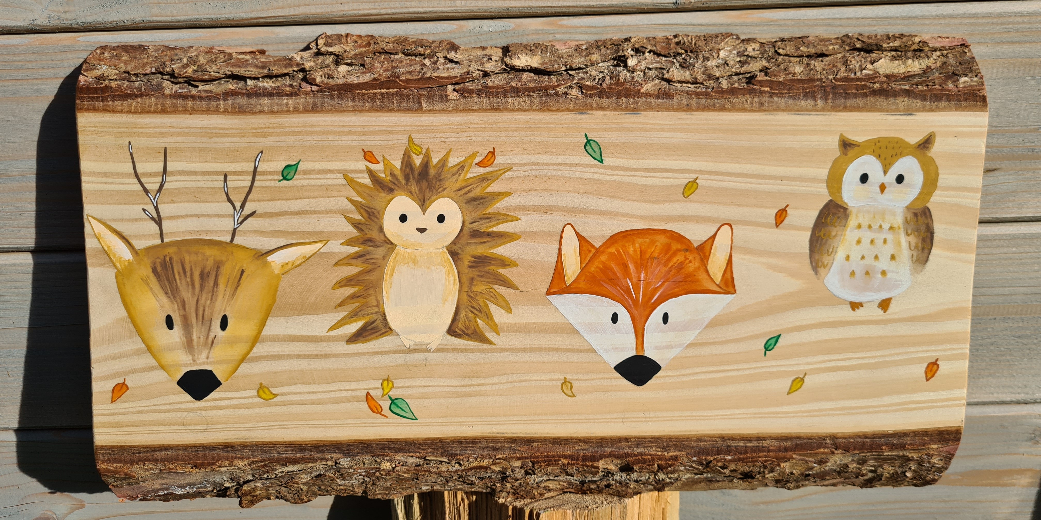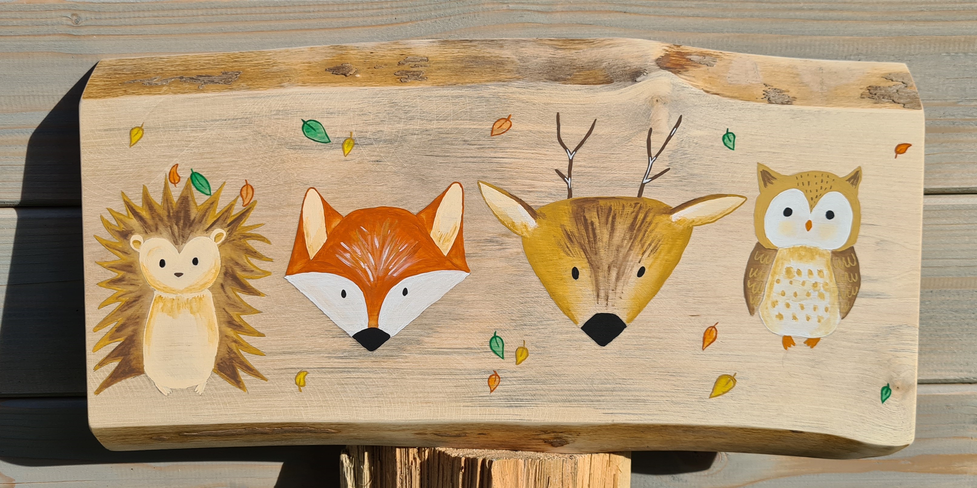 Bis jetzt gibt es zwei verschiedene Motive, die ich per Hand mit Acrylfarben auf Wasserbasis auf Multiplex-Holzplatten aufmale.